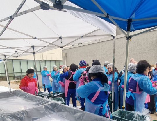 김장 준비를 하는 봉사단의 바쁜 모습