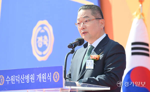 '수원덕산병원 개원식'에서 강병직 덕산의료재단 이사장이 인사말을 하고 있다.