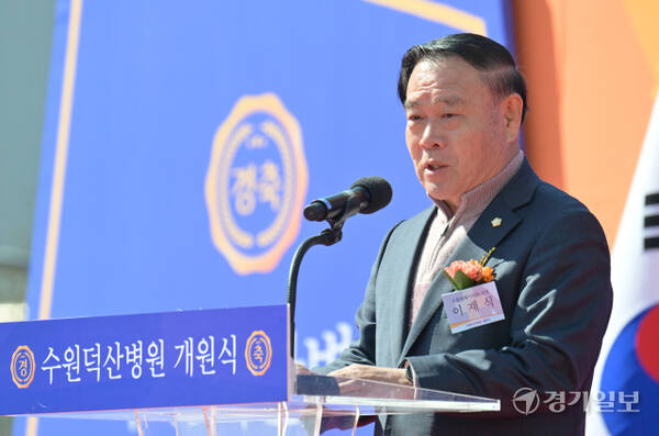 '수원덕산병원 개원식'에서 이재식 수원특례시의회 의장이 축사를 하고 있다.