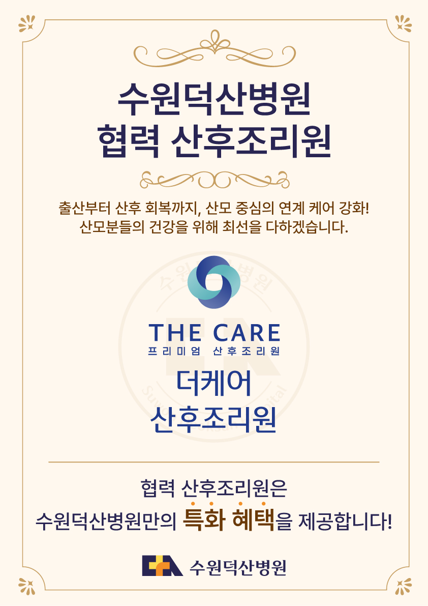 4. 협력 산후조리원 연계 시스템 :: 협력 산후조리원은 수원덕산병원만의 특화 혜택을 제공합니다. 통합 케어를 통해 산모의 회복 과정을 안정적으로 지원합니다.