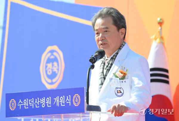 '수원덕산병원 개원식'에서 강병직 덕산의료재단 이사장이 인사말을 하고 있다.